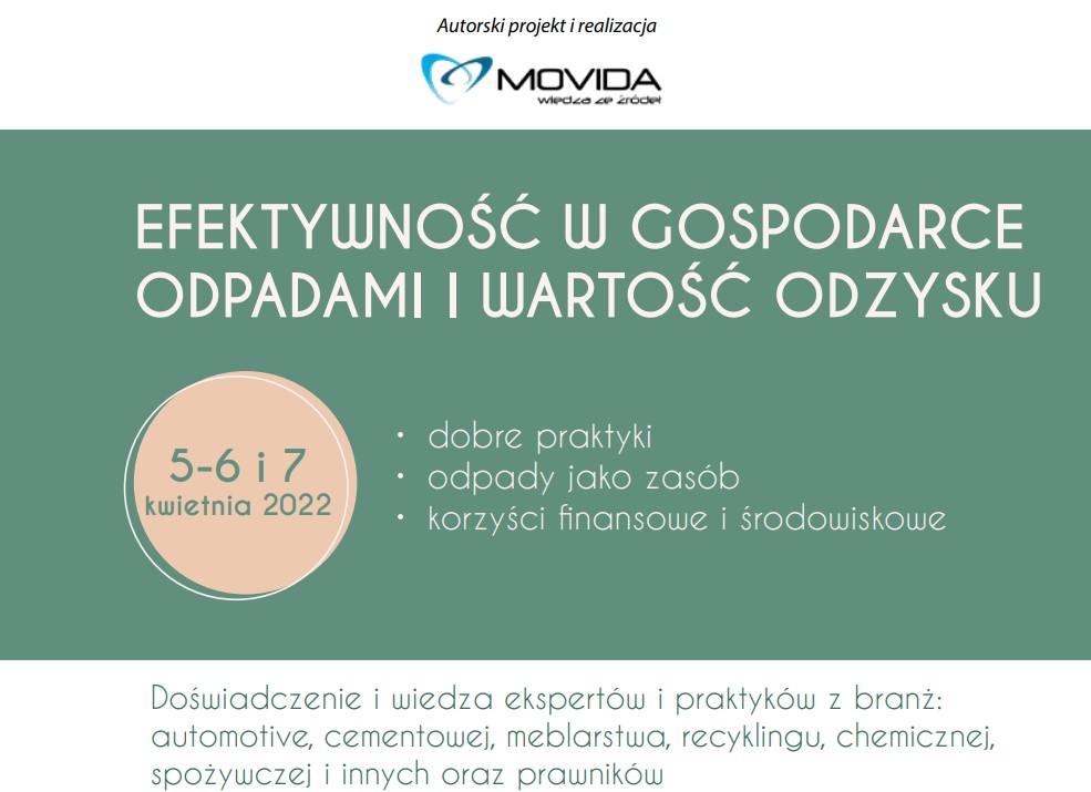 Dwudziesty pierwszy wiek to czas aktywnej pracy na rzecz środowiska. Po latach w których ludzka nieświadomość zbliżyła nas niebezpiecznie blisko do granicy wydolności błękitnej planety, nadeszła era świadomego działania. Czas na wielkie sprzątanie świata, ochronę zasobów które pozostały i dyscyplinę. Ekologia stała się znaczącym filarem polityki. Ekologia to prawo, rynek pracy, technologia, biznes, styl życia. Czy odpady to temat tylko wstydliwy i brzydko pachnący? Zdecydowanie nie! Odpady właściwie wykorzystane to cenne źródło surowca i dochodu. Ustawodawca niestety nieułatwia przedsiębiorcom skutecznego działania. Celem naszego spotkania jest wyjaśnienie zawiłości Krajowego Planu Gospodarki Odpadami 2022. Szczegółowo omówimy rozwiązania najbardziej ekonomiczne dla przedsiębiorstwa i środowiska oraz w jaki sposób i co można odzyskać z odpadu.